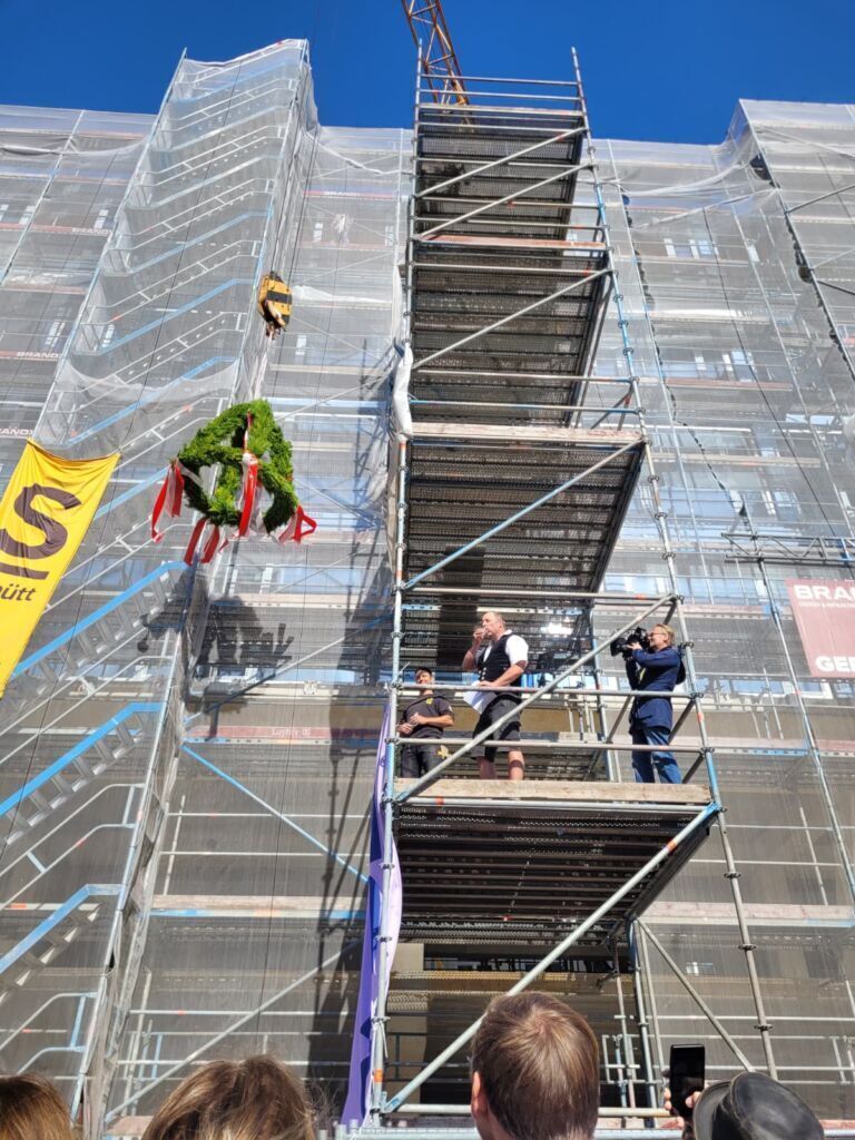Der Projektstart im Oktober 2025 hätte kaum passender sein können: Zum Kick-off fuhren wir gemeinsam zum Neuen Amt Altona und landeten direkt mitten im Richtfest. Inmitten der Baustelle, des Richtfest-Trubels, vielen Menschen, guter Stimmung und ersten Eindrücken vom entstehenden Gebäude wurde schnell klar, dass das NAA kein gewöhnliches Projekt ist.