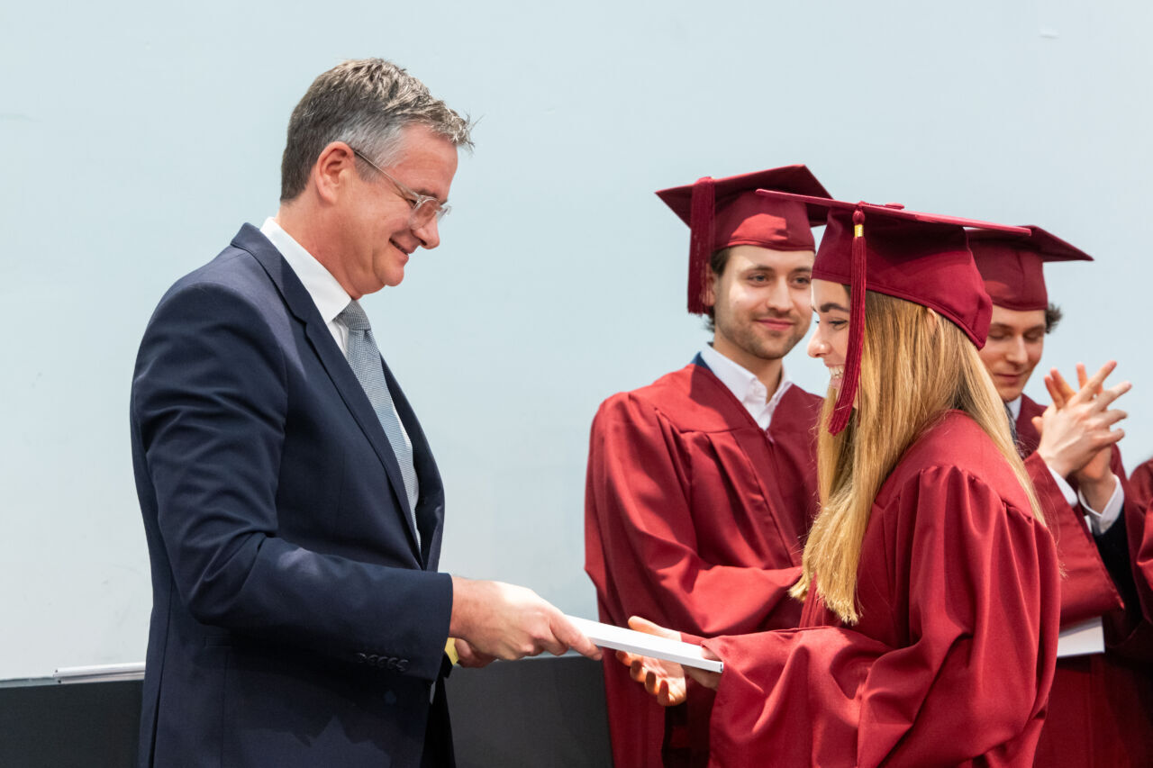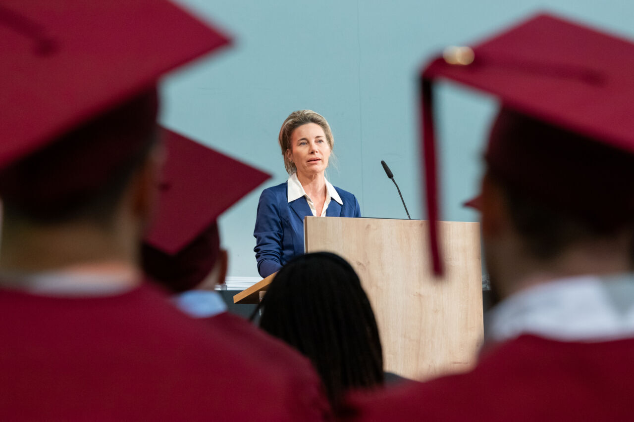 Sie sprach über konstruktive Empörung, den Einfluss von Algorithmen auf gesellschaftliche Debatten und die Notwendigkeit, Verschwörungserzählungen und Desinformation entschlossen entgegenzutreten. Ihre Botschaft an die Absolvent:innen:„Seid eine Stimme, kein Echo. Nutzt euren Einfluss für eine gerechtere Gesellschaft.“