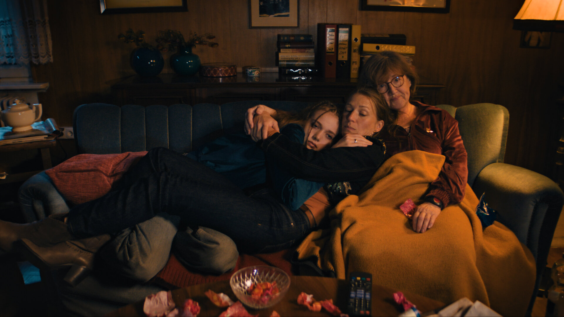 While a second line appears on 15-year-old Zoe’s pregnancy test, her stressed-out mother Gabriella and her care-dependent grandmother Elisabeth are preoccupied with their own worries. Caught in a spiral of mutual criticism, they leave no room for Zoe’s reality.